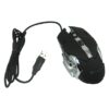 This PremiumSun USB corded mouse features 2 buttons and a clickable scroll. It has a resolution of 800dpi and has a fancy red lighting effect shining out of the mouse from the clear ring around the mouse and the center scroll.